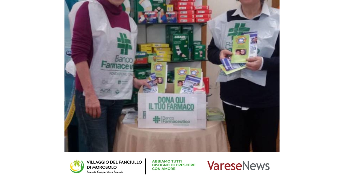 Sabato 14 febbraio i volontari del Banco Farmaceutico saranno alla Farmacia San Giovanni Bosco di Luvinate (VA) per sostenere il Villaggio del Fanciullo di Morosolo in occasione della Giornata di Raccolta del Farmaco indetta dal Banco Farmaceutico. I medicinali raccolti sosterranno le famiglie e i minori accolti dalla storica realtà varesina.