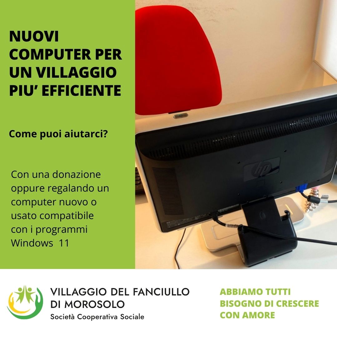Molti dei nostri PC, in particolare quelli utilizzati all’interno delle Case, sono ormai obsoleti. Non riescono più a supportare i software e i programmi Windows più recenti, fondamentali per il lavoro quotidiano di supporto alle attività educative e gestionali. Un obiettivo importante e necessario per restare al passo con le esigenze tecnologiche attuali.