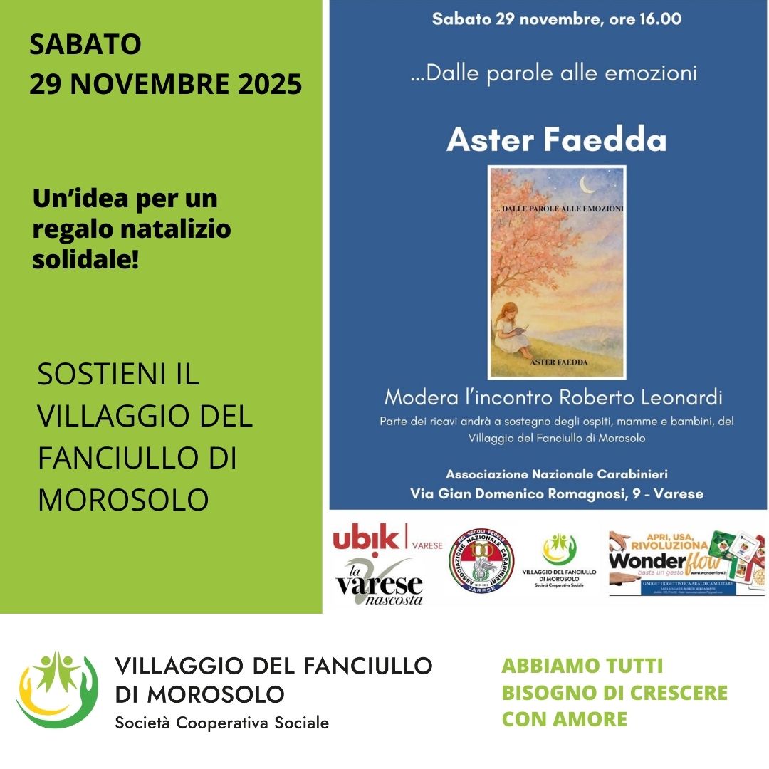 Partecipa all’incontro per la presentazione del libro “…Dalle parole alle emozioni” di Aster Faedda: parte dei ricavi sarà infatti devoluta per offrire un sostegno concreto alle mamme e ai bambini del Villaggio del Fanciullo di Morosolo.